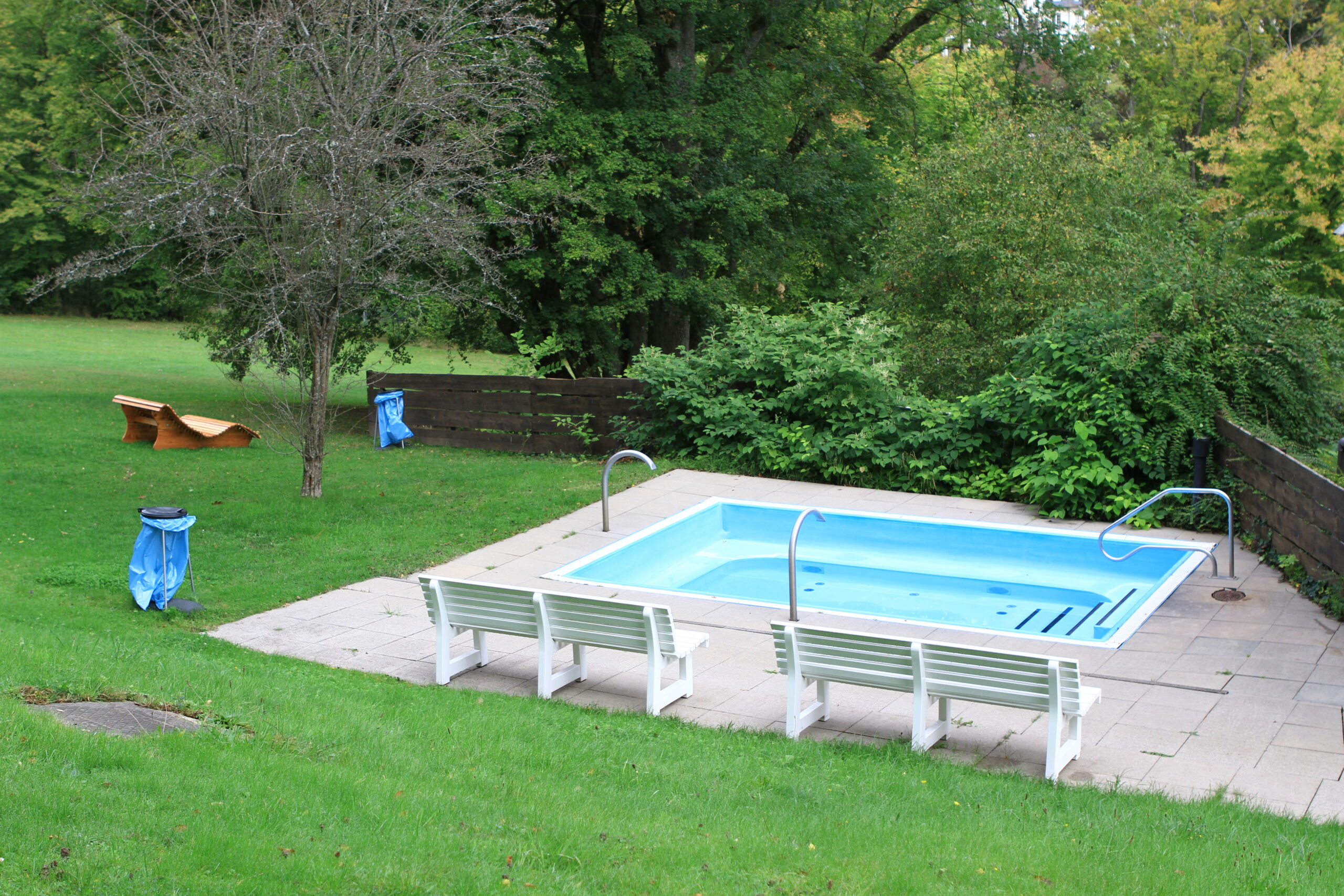 Den Gäs­ten steht ein groß­zü­gi­ges Außen­ge­län­de mit Tauch­be­cken und Whirl­pool (tex­til­frei) zur Verfügung.
