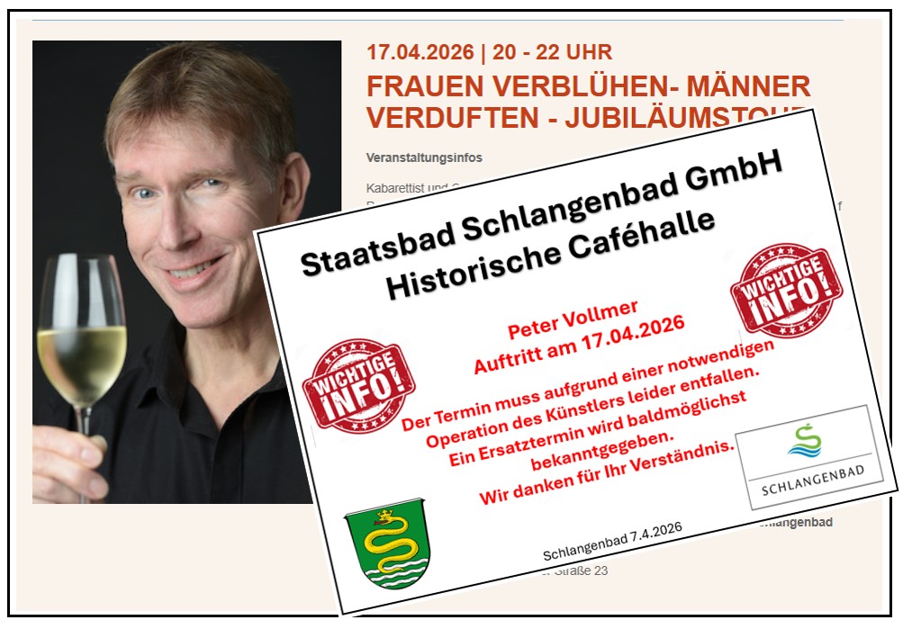 Hist. Ca­fé­hal­le Rhein­gau­er Str. 23 | Ver­an­stal­ter: Kul­tur­kreis Schlan­gen­bad. Ti­cket­ver­kauf 25 €/Kurgäste 23 €